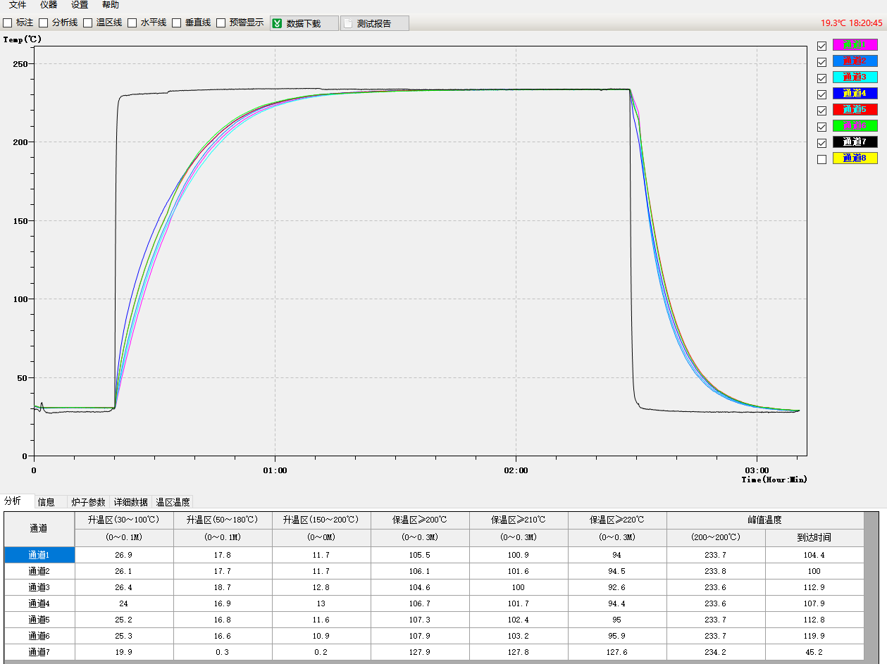 12、曲線上可任意設(shè)定橫線標(biāo)注,更加直觀顯示某個溫度點(diǎn)的各個曲線時間狀 |